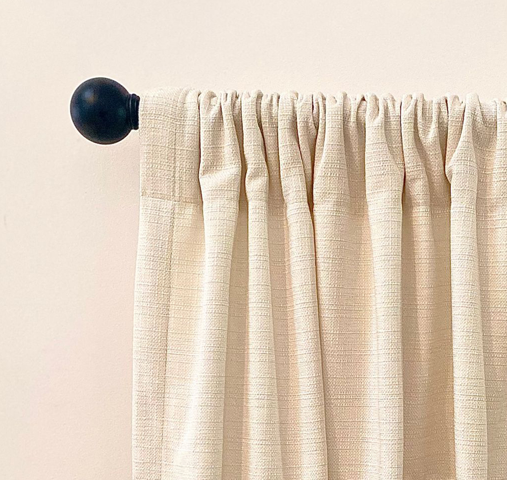 The most classic and common of all methods of hanging curtains, a rod pocket is a sewn-in pocket, or casing, at the top of a curtain panel. It easily slips over a rod and conceals it. Valances hung above the curtain hide the rod even when the curtain is open. Sheers can be mounted under the main panels.